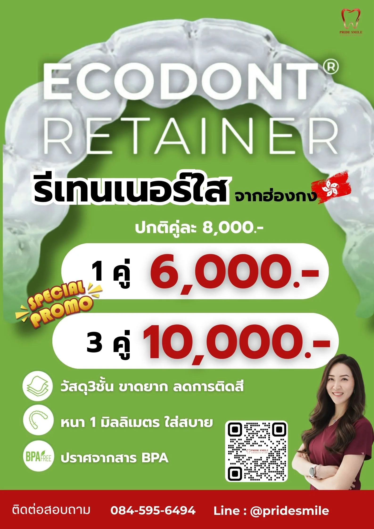 รีเทนเนอร์วัสดุ 3 ชั้น ทนทานต่อการฉีกขาด ลดการเกิดคราบและติดสี บางเพียง 1.0 มม. ใส่สบายแต่ล็อกแน่น