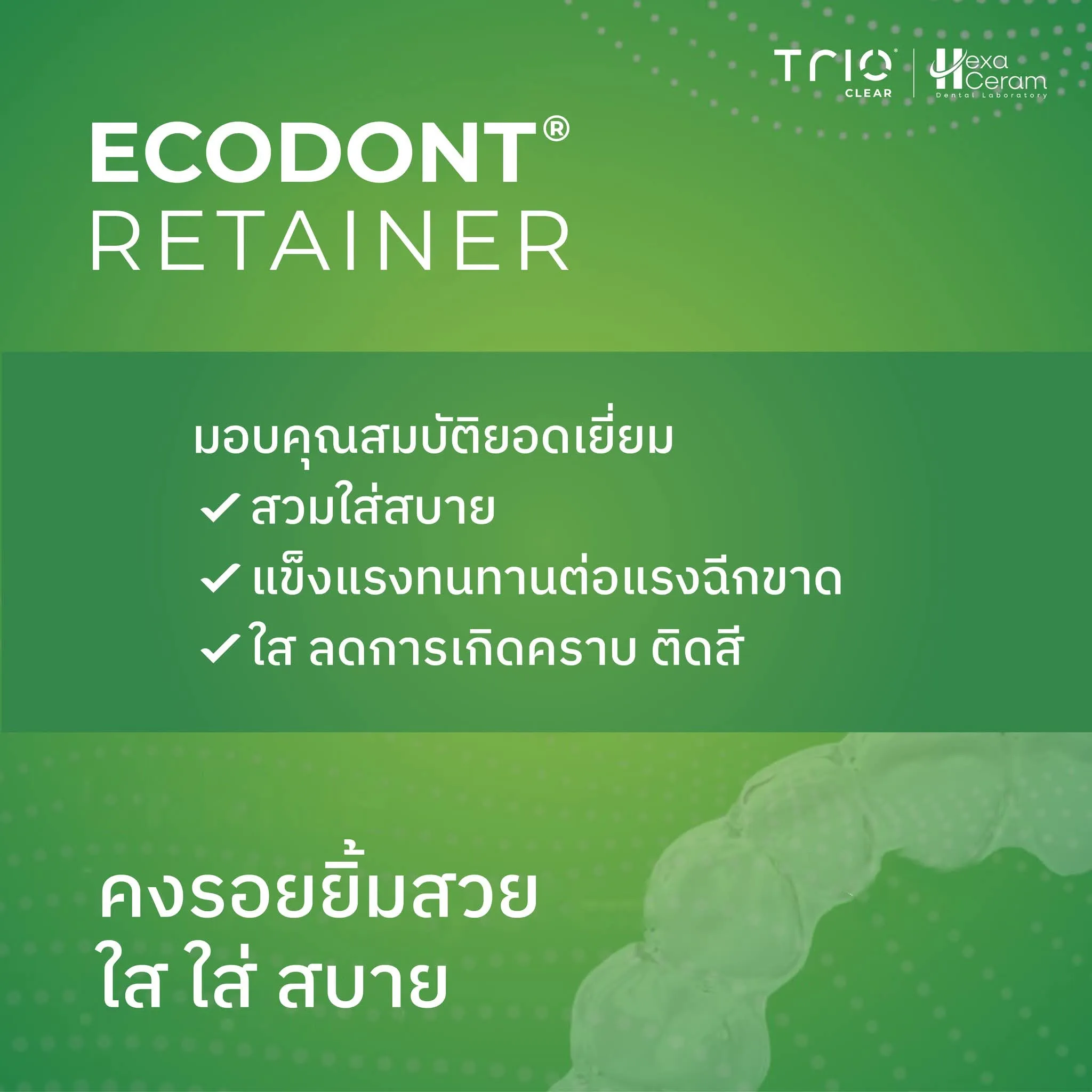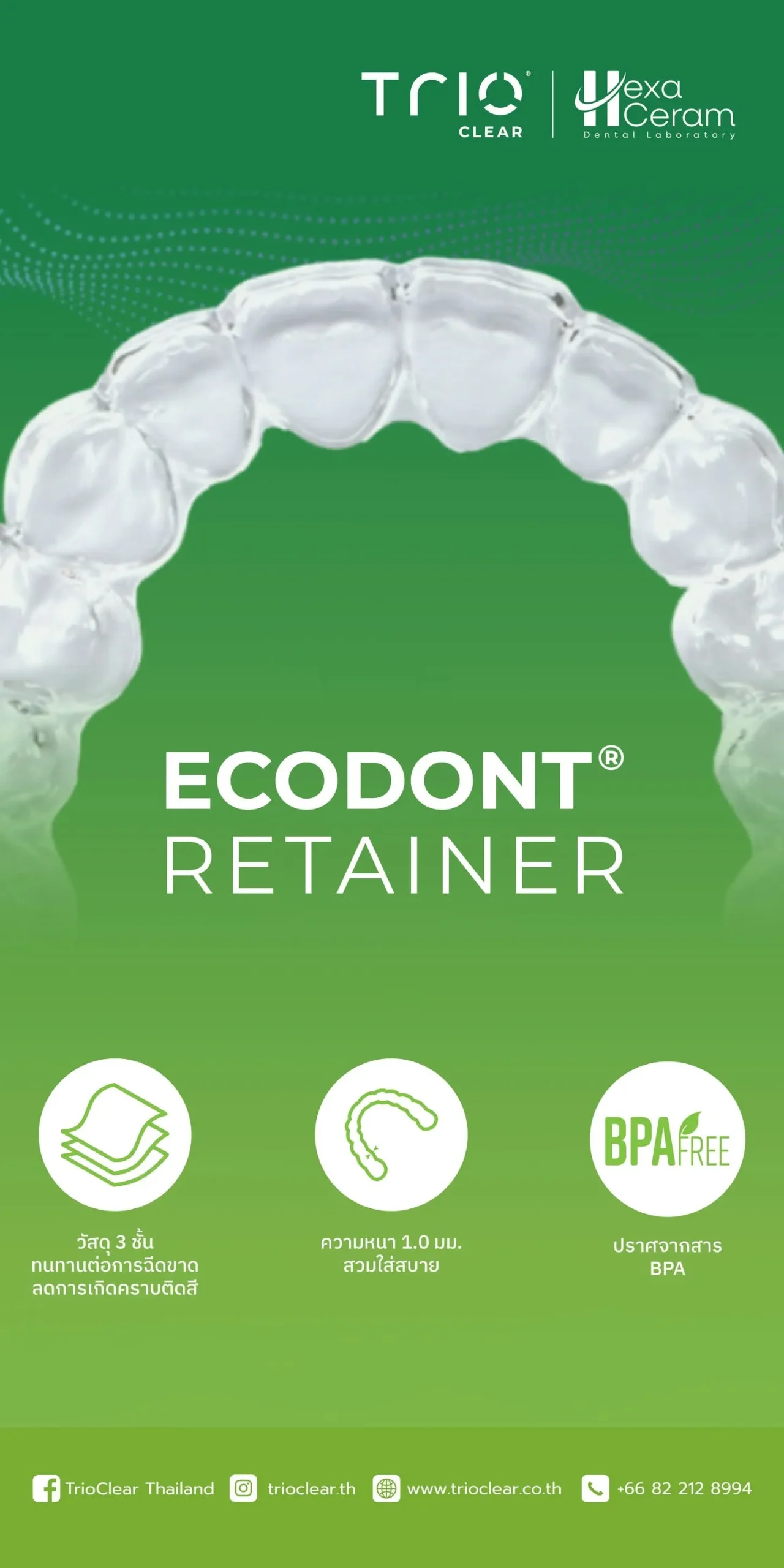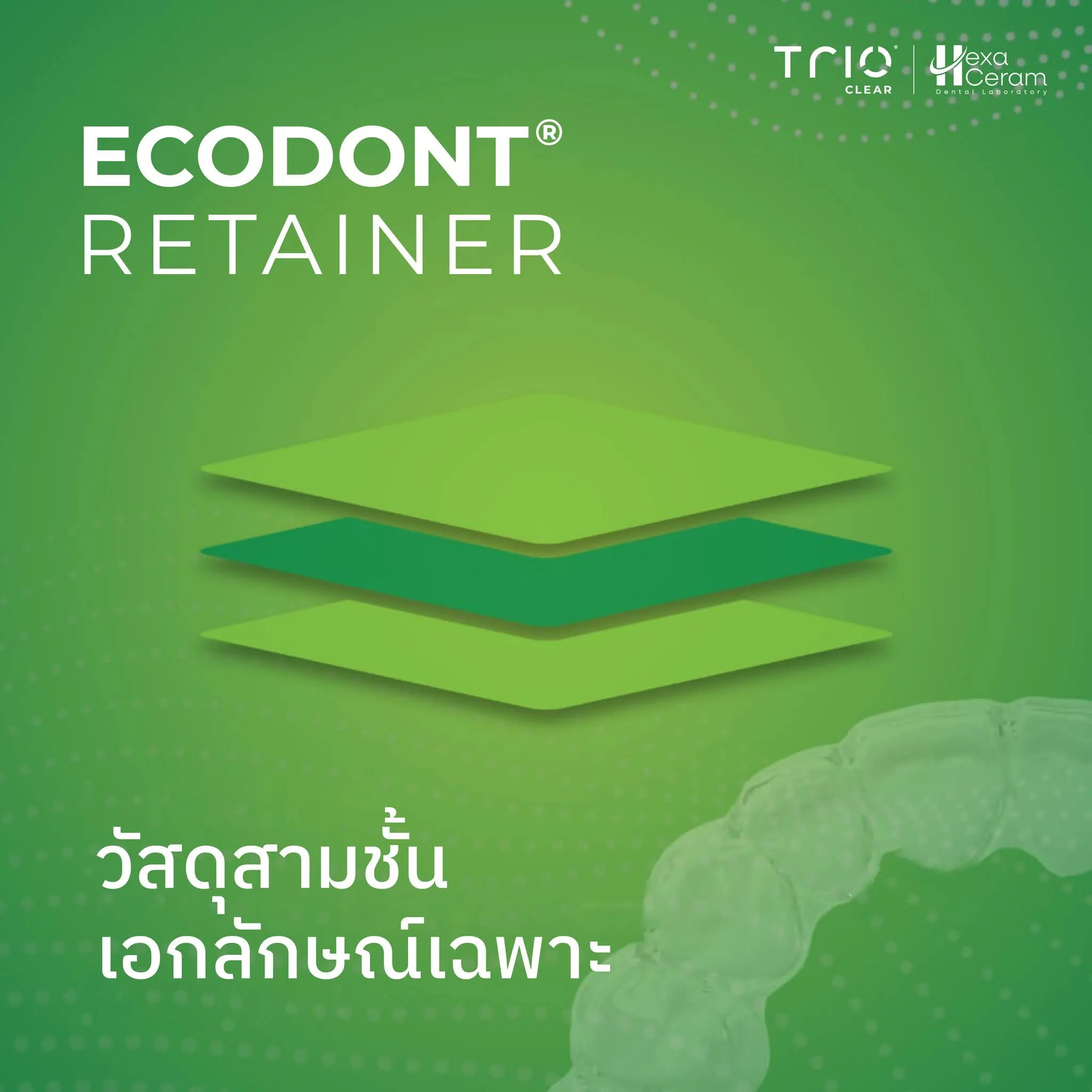 รีเทนเนอร์วัสดุ 3 ชั้น ทนทานต่อการฉีกขาด ลดการเกิดคราบและติดสี บางเพียง 1.0 มม. ใส่สบายแต่ล็อกแน่น